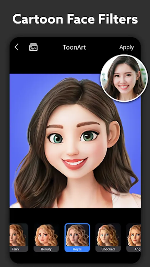 Powered by AI technology, this picture to cartoon editor creates your favorite AI anime filter, it's also a caricature maker and can cartoonify pics! Easily edit photos using avatarify camera filters for pictures and become your favorite 3D cartoon maker or artbreeder avatoon & loopsie deforum avatar! All trending toonme effects and filters including; Barbie filter, baby filter, bitmoji caricature, toonify filters, face child, yellow head, AR emoji cosplay, beauty face portrait and +100 more with awesome background options and digital art layout. Use your selfie camera with this face app and easy avatarify animation maker and voila! Share your masterpiece pics art that you cosplay on all social media as Instagram or on Facebook! Imagine you become your favorite cartoon princess or animation character with the amazing cartoonify filters and showing your toon me selfie on Snapchat with toon app comic maker!