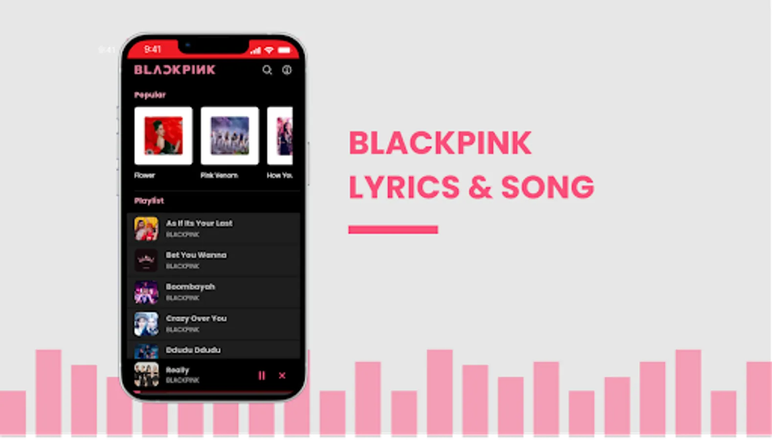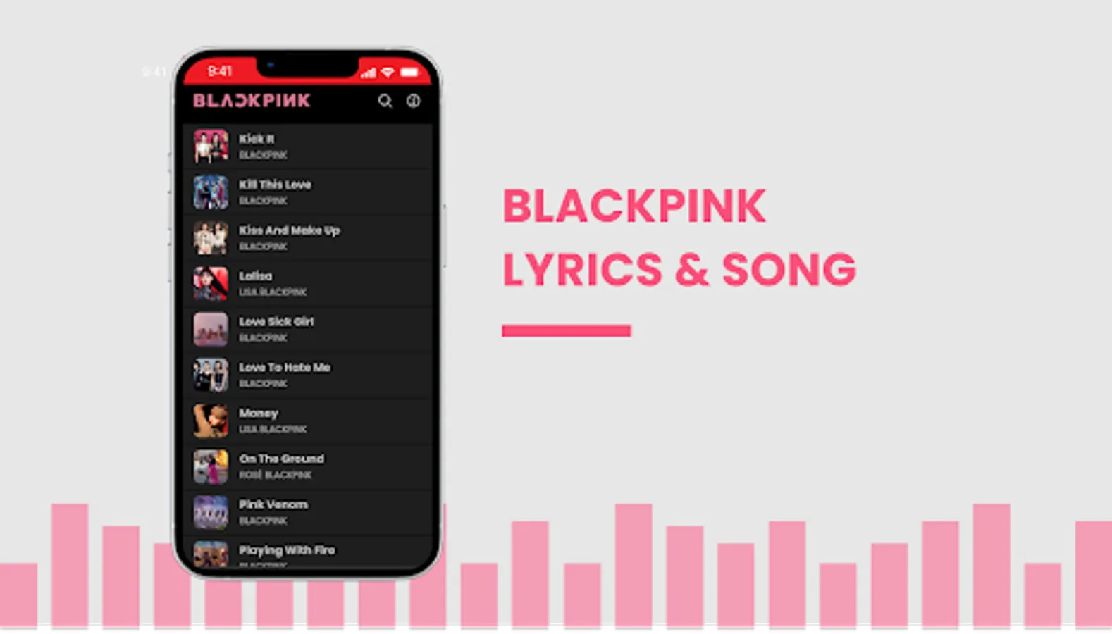 A collection of BlackPink songs and accompanied by automatic lyrics which make it easier for users to listen to music while singing