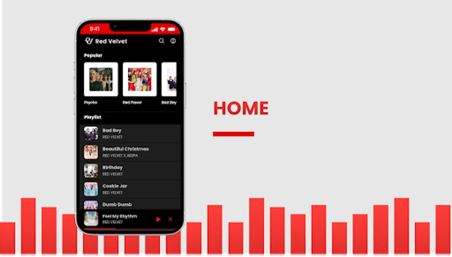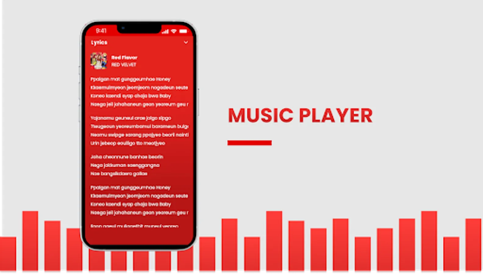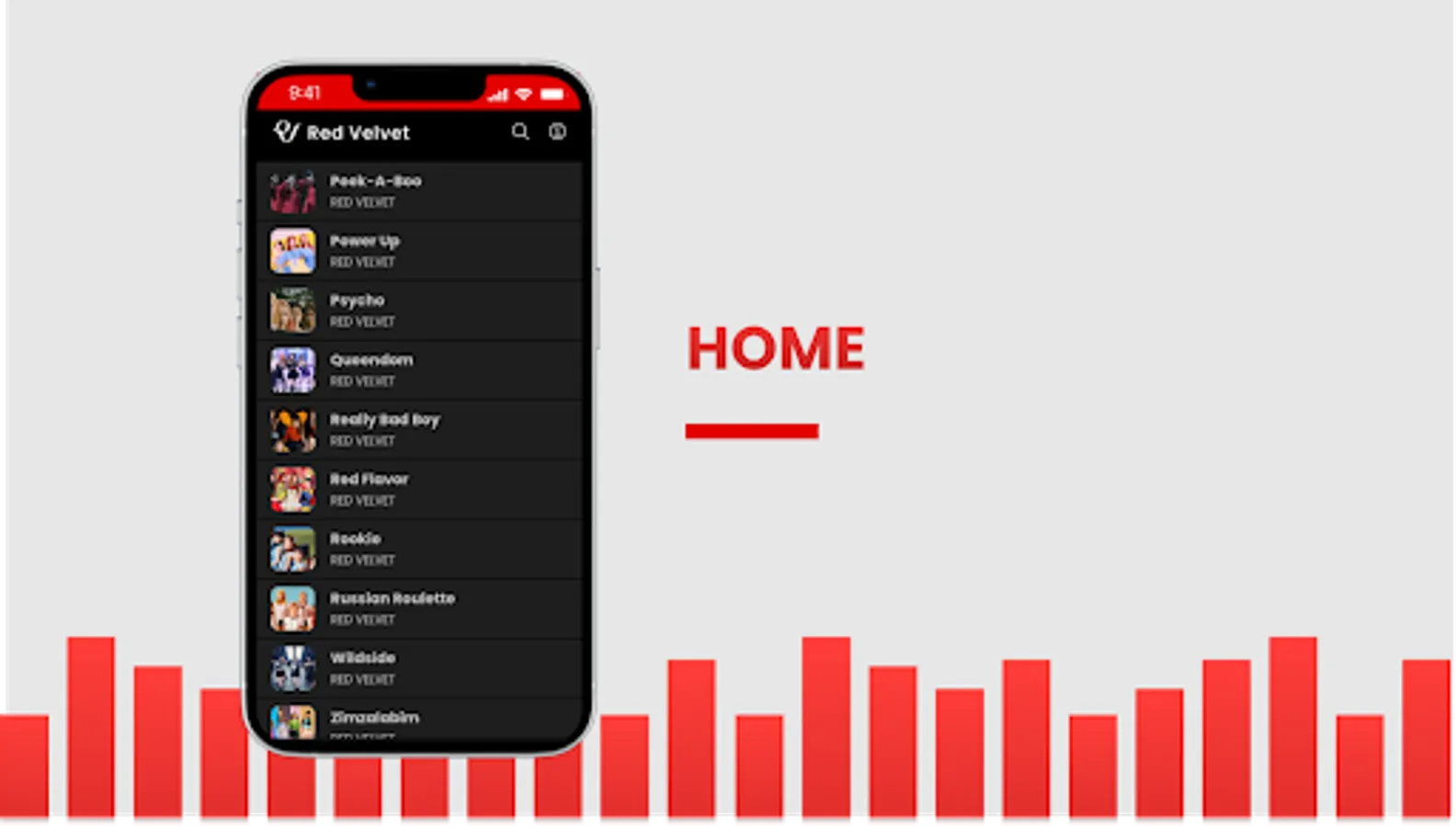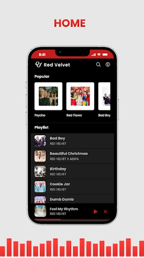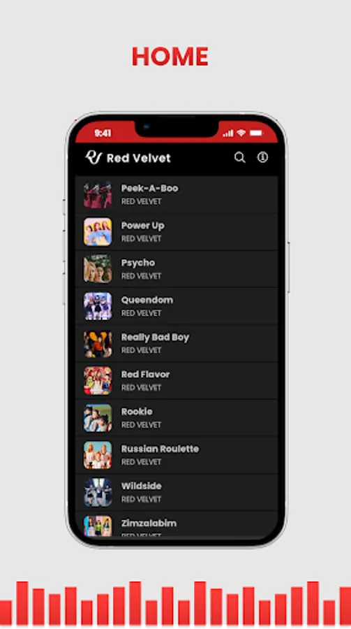 A collection of Red Velvet songs and accompanied by lyrics that make it easy for users to listen to music while singing