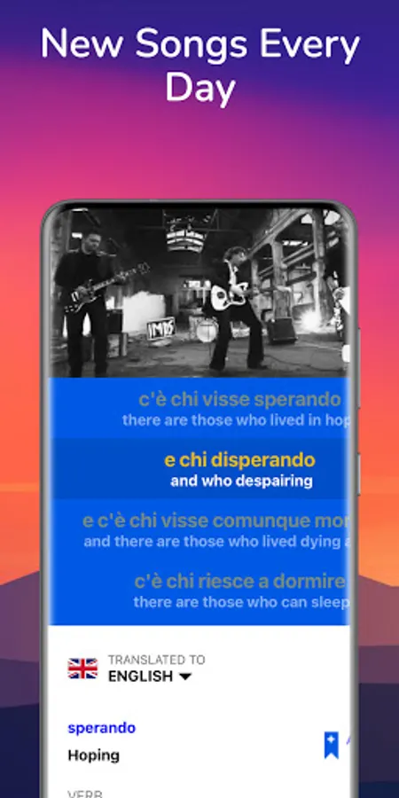 Take your vocabulary to the next level with this lyrics to songs learn languages app. All you have to do is play a song of your choice and read the lyrics while you sing along, select your new unknown word by "LONG PRESS" in the word, check the translation, and add it to your own words list.