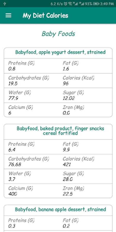 My Diet Calories: Helping you to live healthy and feel great. Using the calories table you can define the energy value of the most popular food items and cooked foods. As well, you can learn and correct your daily eating. General list includes the information on energy, carbohydrates, proteins and fats content in 100 grams of food. Energy value is expressed in kilocalories (kcal). Data in table are maximally exact, but you shall remember that cooking peculiarities of some food influence the energy value and content of proteins, fats and carbohydrates, Water, Sugar, Iron, Magnicium.