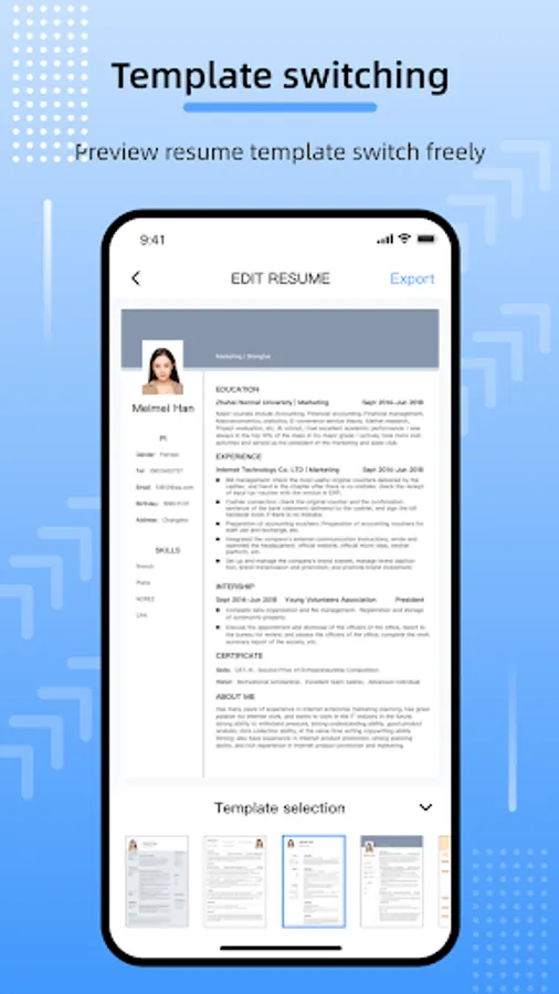 Super Resume is an efficient and professional resume making app. Providing resume templates for various industries, the APP is designed with simplicity to help you find a job easily. There are classic, simple atmosphere, professional and efficient style templates, improve the efficiency and success rate of job hunting.