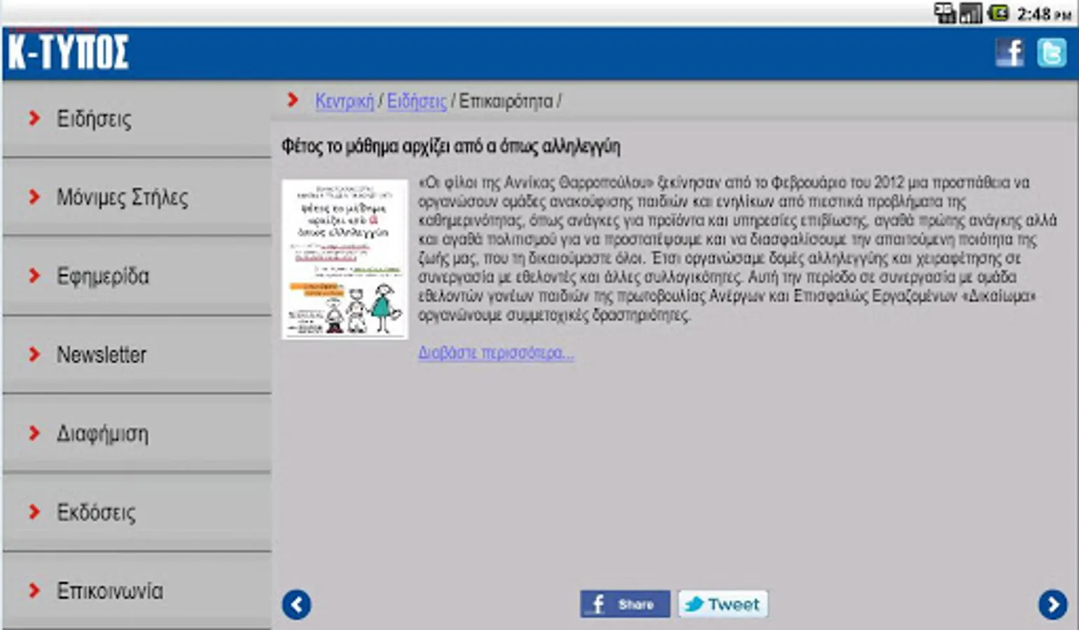 - Customization of categories and add news from the newspaper "Razor" and website mag.xirafi.gr