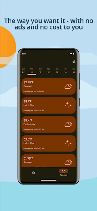 And the best part? We're not snooping on you. We don't collect or share any of your personal data with third parties. Your location data is only used to show you the weather in your area, and it's stored locally on your device - not on any external servers.