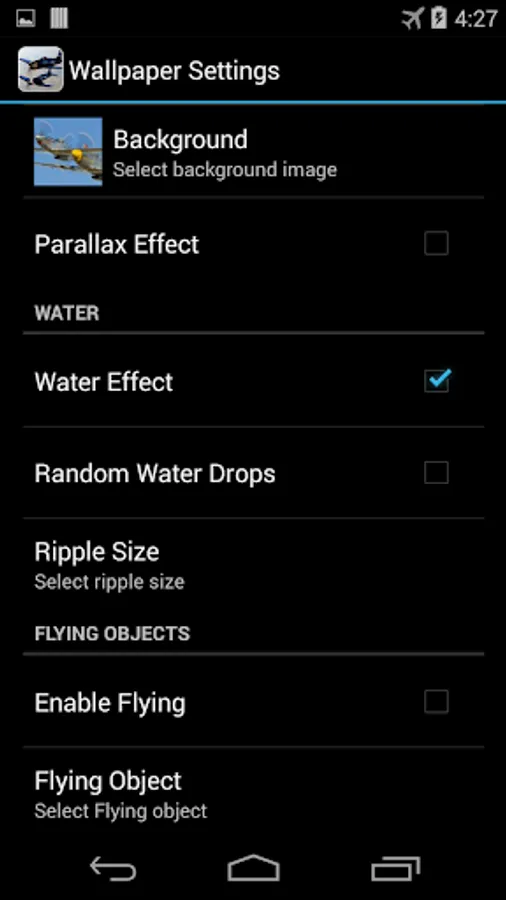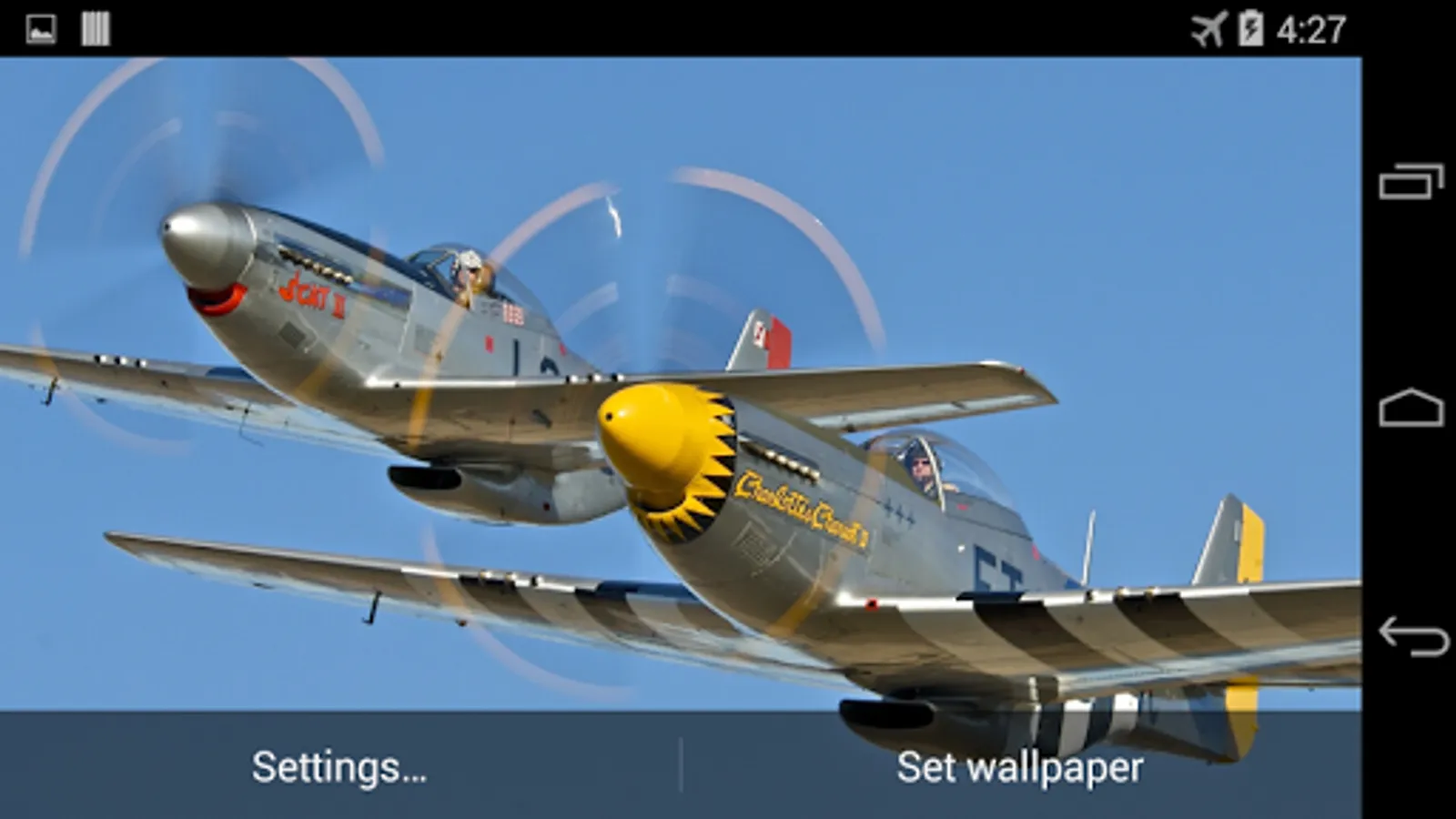 Warplanes Of World War II - free live wallpaper with parallax effect that simulates water ripples and water drops on the surface.