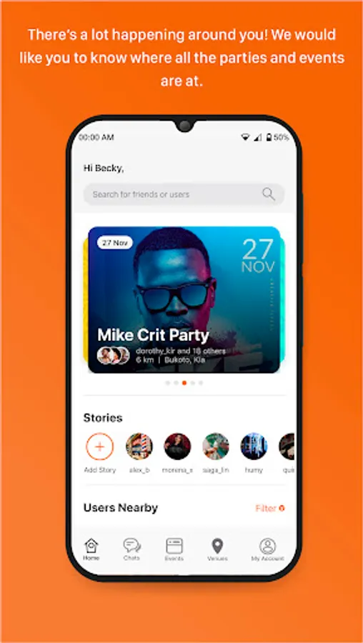 The app also has a users nearby section which allows like-minded outgoing strangers to interact with each other.