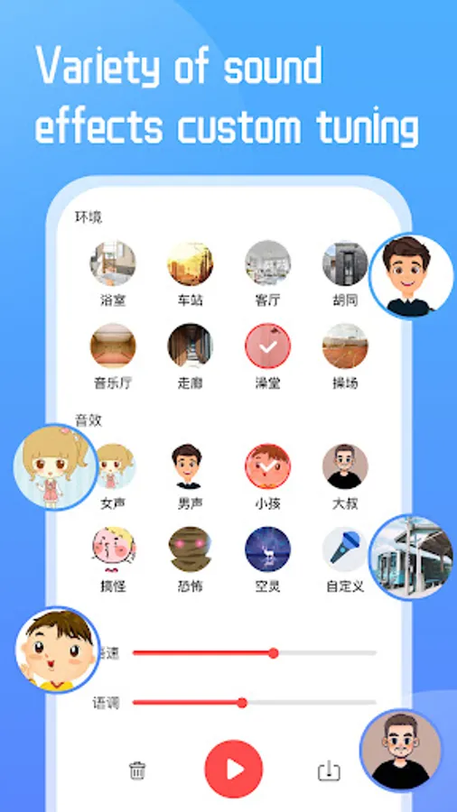 A special sound changing app focusing on changing timbre. Have a variety of sound source effect, uncle, girl, girl, royal sister, zhengtai and so on sound change effect, custom adjustment.