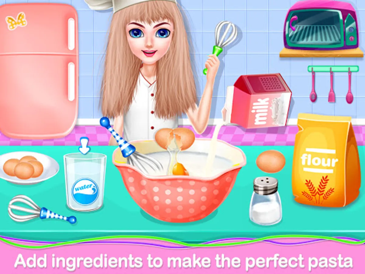 Make pasta in cooking food maker games kitchen fun and enjoy the challenge!. Cook tasty noodles in crazy kitchen! Make pasta food in your kitchen games for girls and run your own noodle maker chinese restaurant games free. Become a crazy chef after cooking pasta maker. Play noodle maker cooking games. Food maker - Kitchen cooking games for kids is a learning for kids. You should learn the recipes of noodles to become sweet chef game. After making noodle games clean the cooking kitchen otherwise mom and dad will be angry on you. There in this food games you have different options of noodles and pasta .