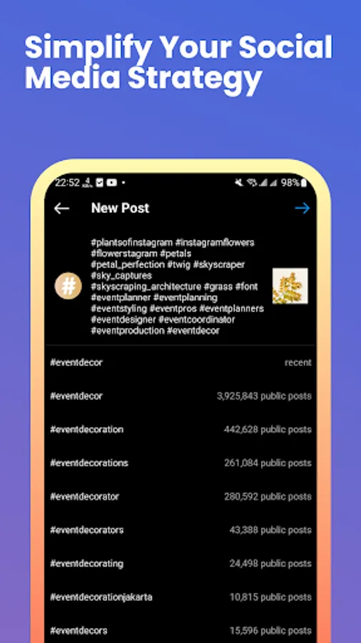 Simply snap a photo or select an image from your gallery, and let HashtagerGPT do the rest. Our advanced AI algorithm analyzes the image and generates a list of relevant hashtags based on the content of the image. Whether you're sharing a stunning sunset, a delicious meal, or a cute pet pic, HashtagerGPT will suggest the perfect hashtags to help your post get noticed.