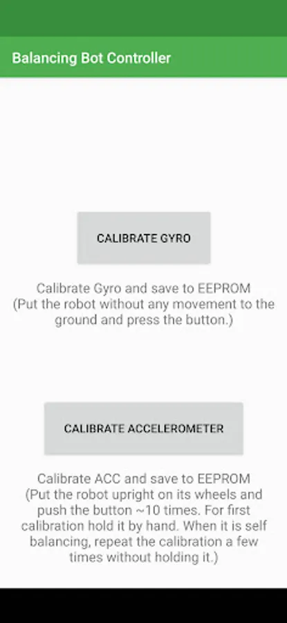 This is an app for controlling balancing robot. On the first startup, the robot will configure to AP(Access Point) mode with SSID "Balancing Robot" and password "12345678". Connect your WiFi to this AP. Once connection is established, open the App and should see telemetry data from the robot, including speed, voltage, power...etc, if not just press the Connect button to connect manually.