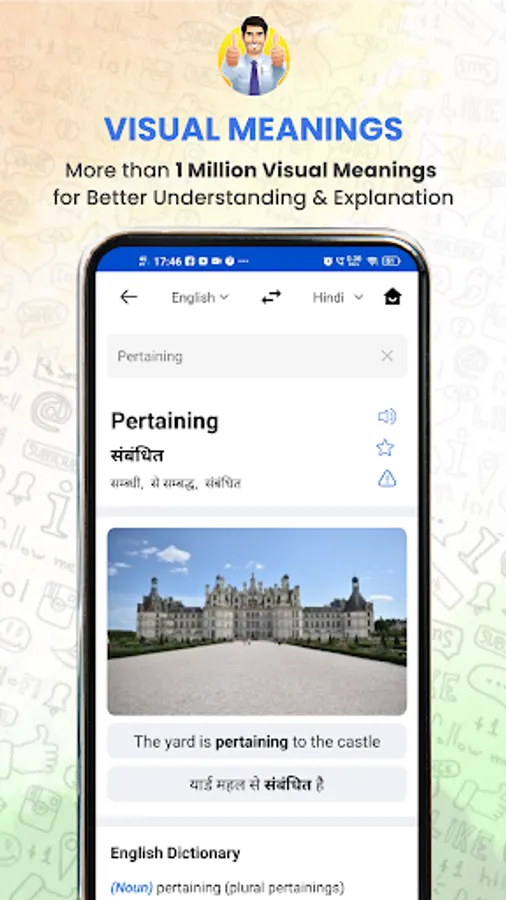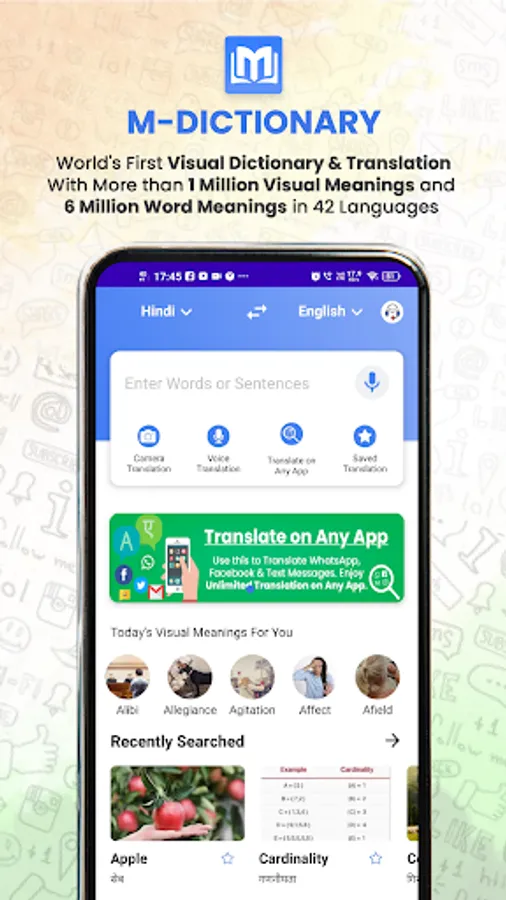 M-Dictionary is World's First Free Visual Dictionary & Translation App with Visual Meanings for more than 1 Million Words available in 12 Indian Languages & 30 International Languages.