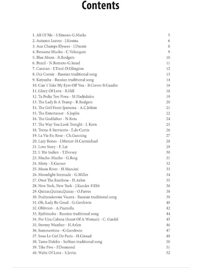 "40 Beautiful Songs For String Quartet" is a set of four books which contain the most popular and traditional songs from all over the world. THE BOOK IS IN THE NOTATIONS. Suggestions: The working possibility of opening a page3 (content) and the page6 as an example on one of the songs.