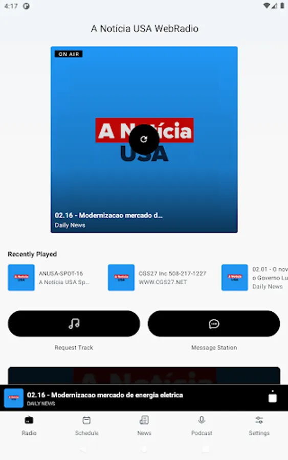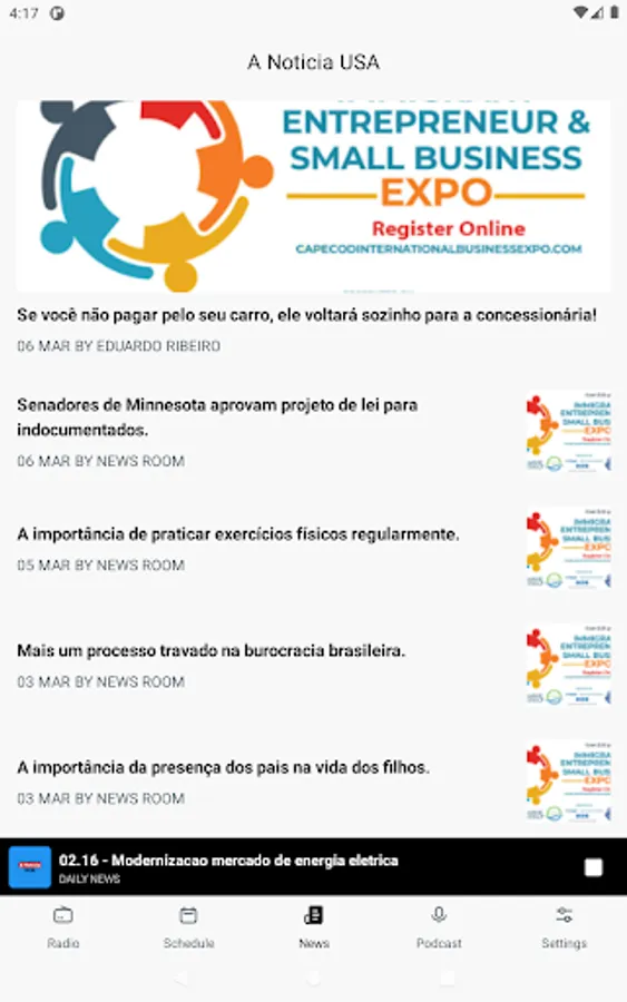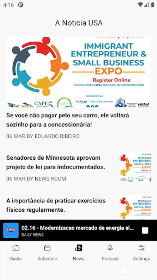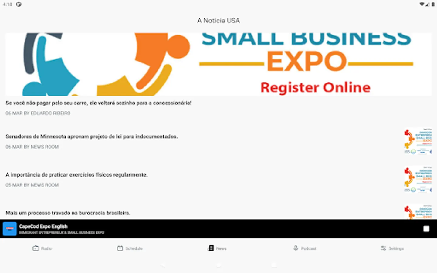 O A Notícia USA WebRadio é um empreendimento jornalístico, informativo, de comunicação escrita, em visual, áudio e vídeo que são veiculadas através do seu website e dos aplicativos especialmente desenvolvidos para seus leitores. Brasil, Mundo, Estados Unidos, Esportes, Imigração, Notícias locais e um time de colunistas, levarão ao público brasileiros os acontecimentos diários e importantes.