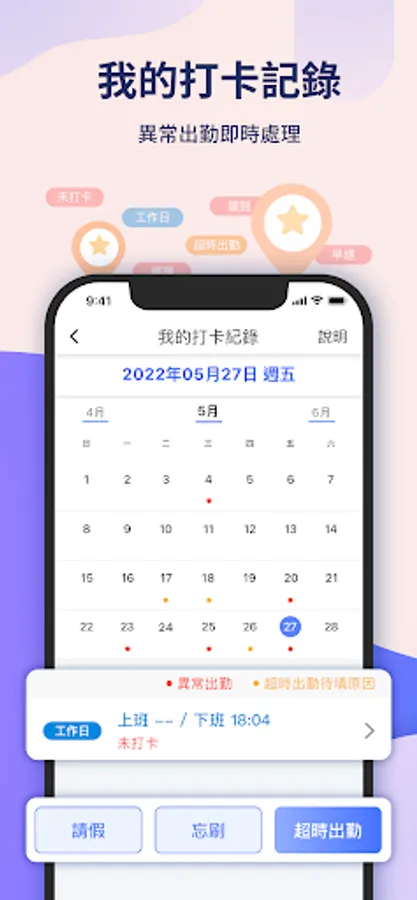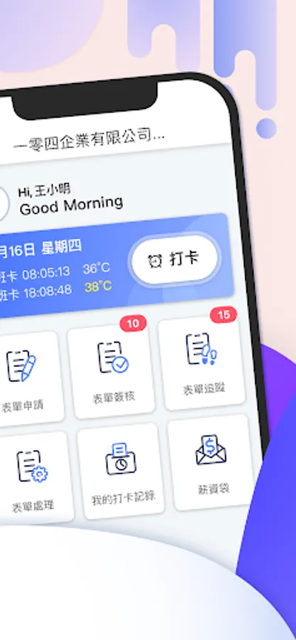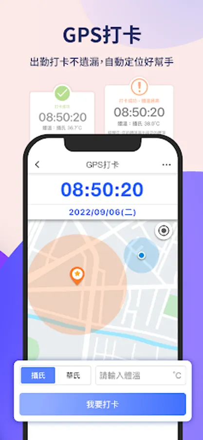 Support GPS clock-in and record body temperature synchronously, set clock-in reminders to avoid forgetting to swipe, you can check the clock-in records at any time, apply for leave or fill in overtime attendance, no longer worry about sign-in and return.
