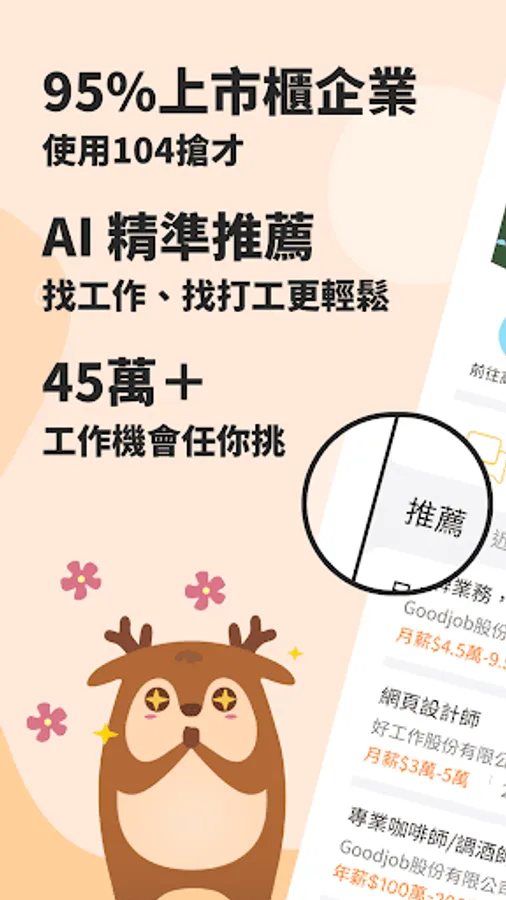 We hope that we can move forward side by side with you on the way of job hunting and job transfer. If you like it, you are sure of 104 Human Bank. Please give us 5 hearts of encouragement~ font>