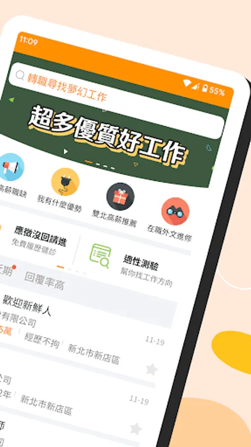 ●Abundant job opportunities -Foreign investors/listed cabinets/technology parks/high-quality startups/well-known brands are all recruited at 104!