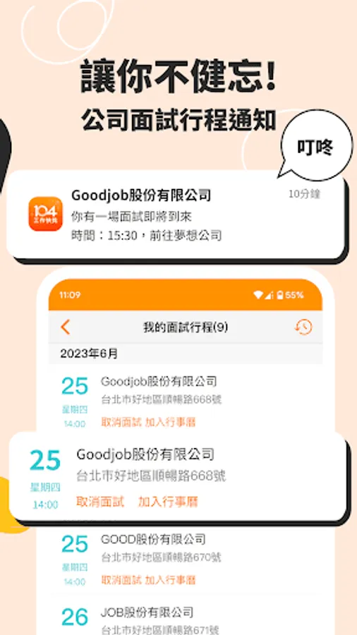 ●Interview schedule management - Can't remember the interview schedule? Don't be afraid to miss the reminder notification, and there is also the function of canceling the interview!