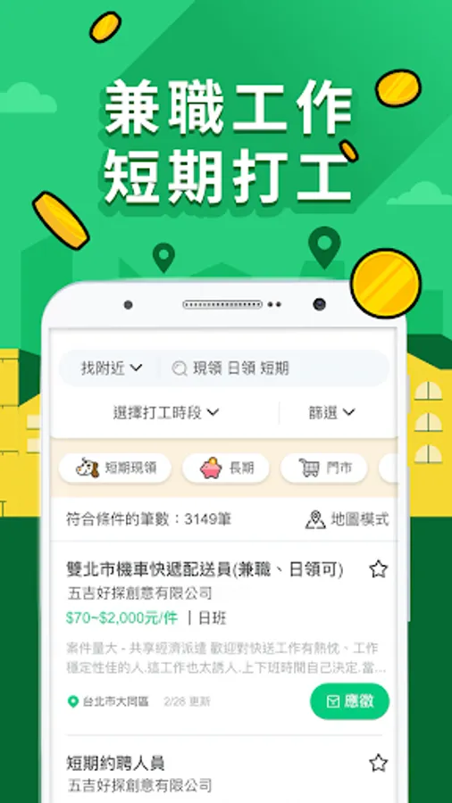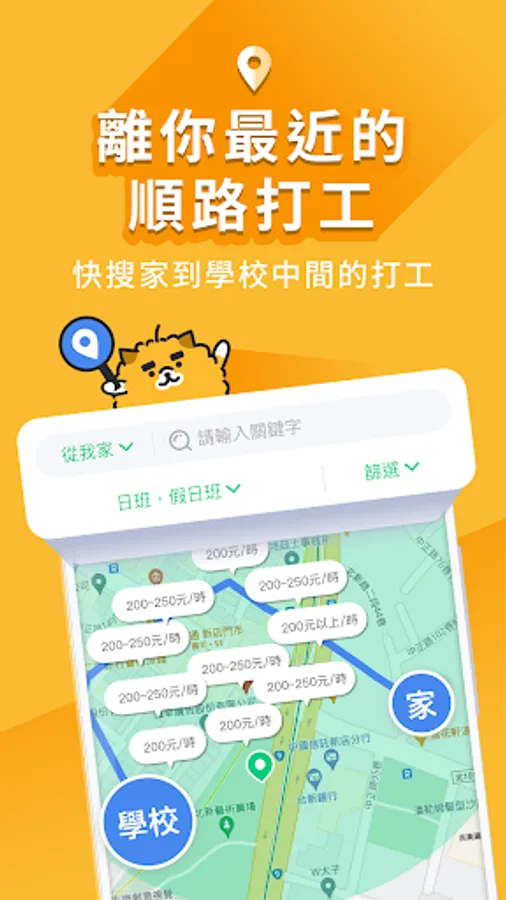 Looking for part-time jobs along the way➣Quickly search for part-time jobs near home and school; find all part-time jobs along the way through the map.