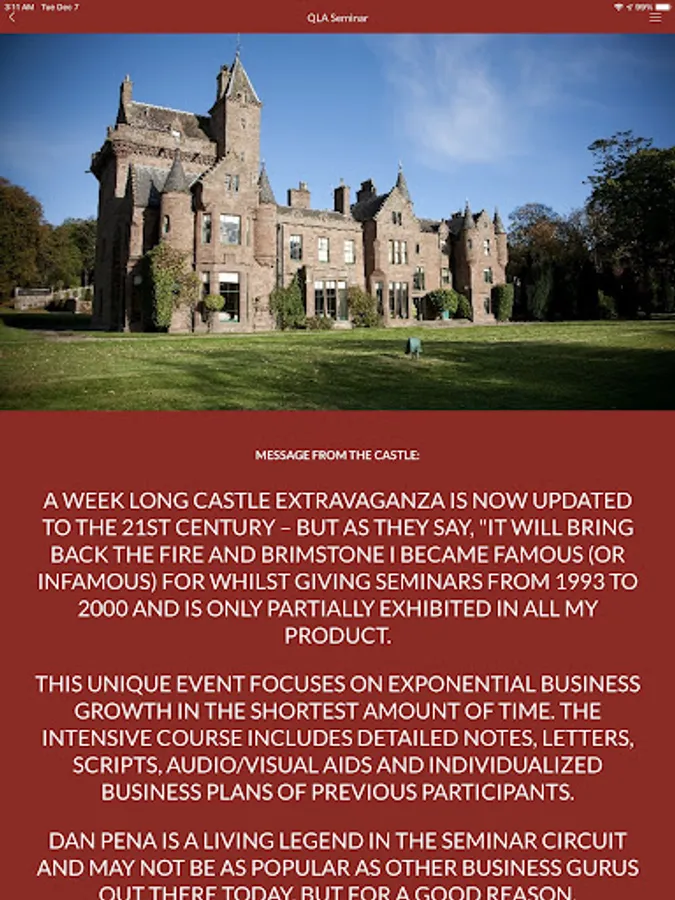 The official Mobile App by Dan Peña - The Trillion Dollar Man. Contains all the free content provided by his site with easy-to-use navigation. Devotees and Mentees can now bring their QLA experience anywhere, anytime with this new App.