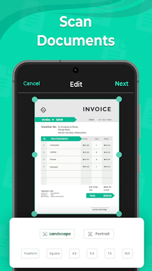 ✔ Scan documents in the best shape and size.
