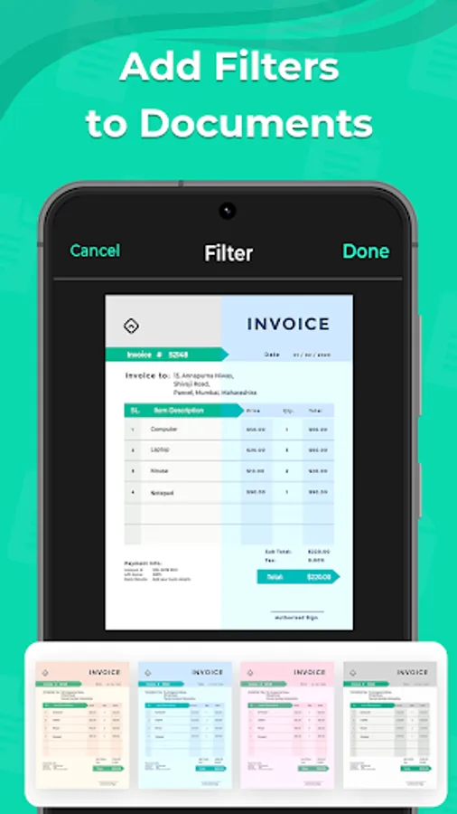 Just take a snap of the document with your phone's camera, and let Camera Scanner do the rest. This quick scan app automatically crops the document, detects its edges, and optimizes colors with various filters. It even identifies the corners for the best quality scan. You can also crop unwanted parts of the document with CS. Furthermore, you can scan documents that are already saved in your phone gallery, whether they're PDF files or regular pictures.