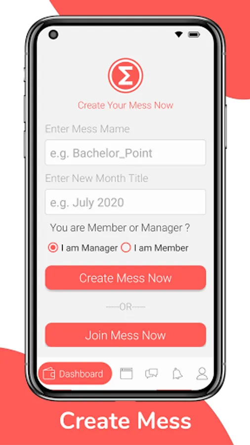2: Then go to Dashboard and create your mess from “create mess” option.
