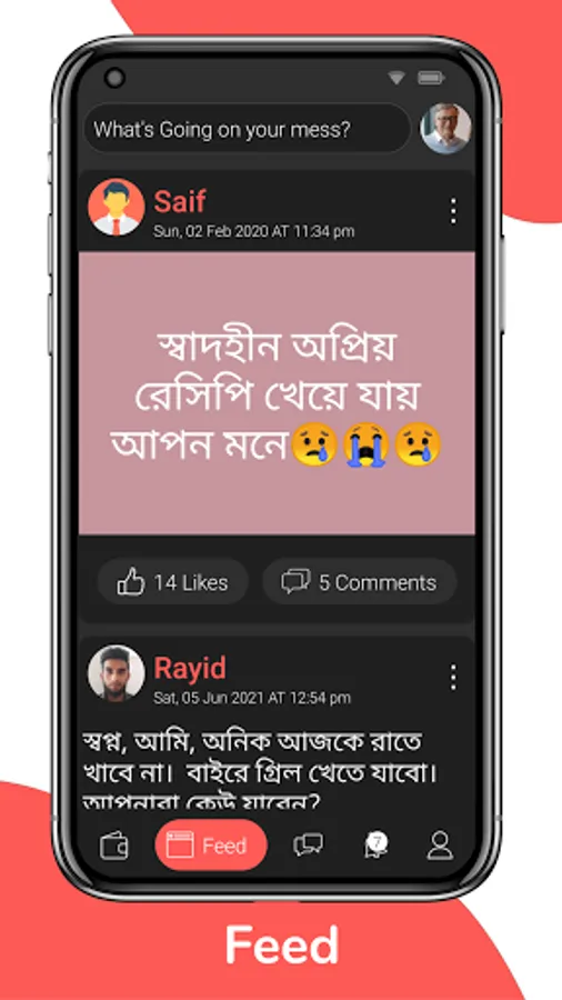 To-Let for mess members: Members can post anything on the news-feed ,that will help everyone to find new member, to sell or buy used products.