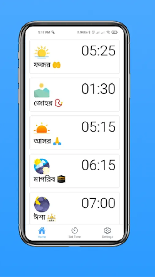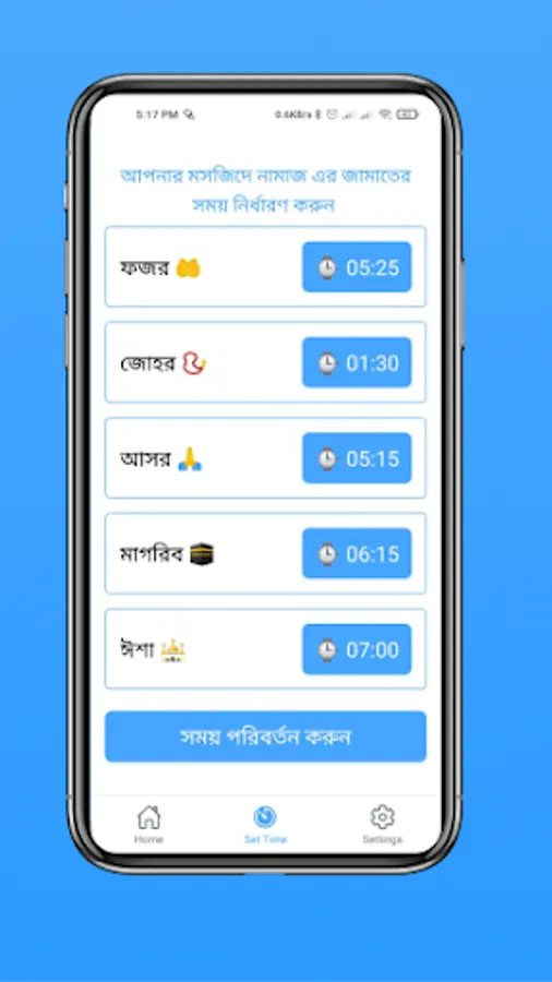 2. Then click on Set Time to set the Jamaat time of each Waqt.