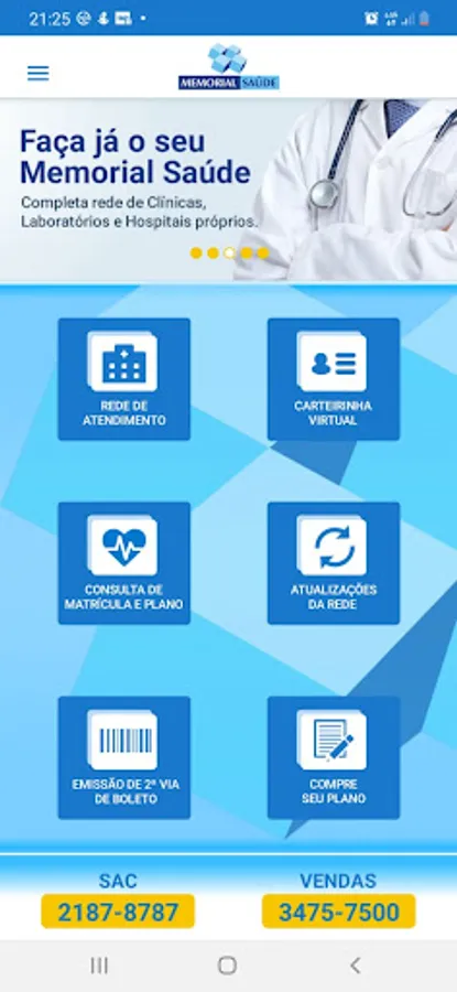 The Memorial Saúde app for Smartphone provides easy access to your plan's benefits.