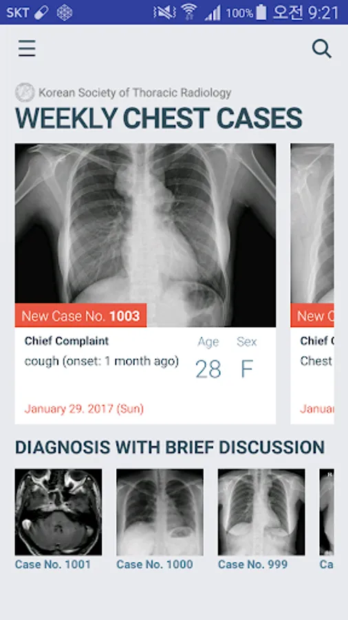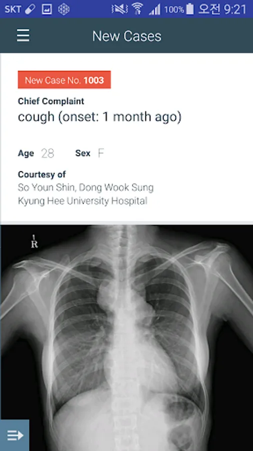 The app, “Weekly Chest Cases” of Korean Society of Thoracic Radiology provides easily accessible, high quality education of thoracic radiology through a case based approach. (Such as Chest, Radiology, quiz, thorax, lung, CT, computed tomography)