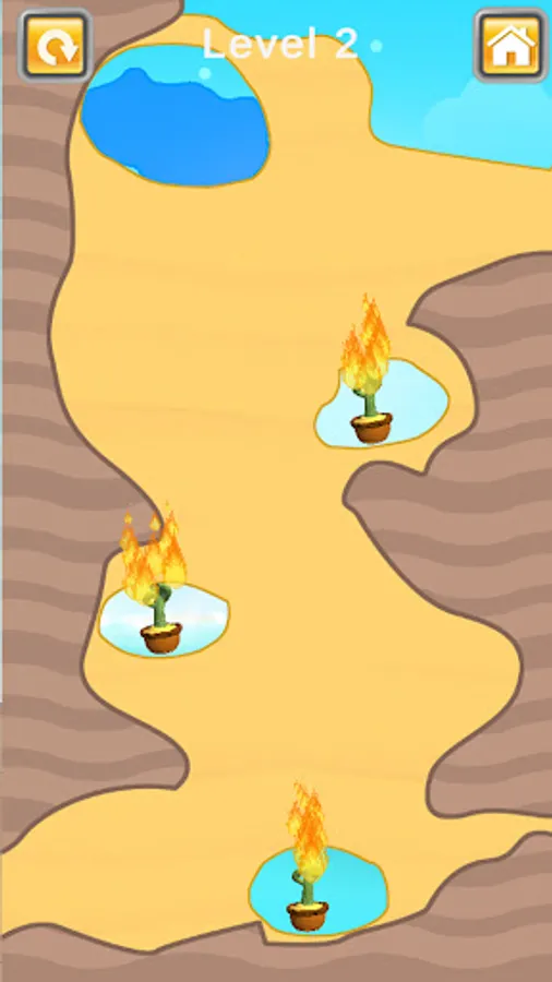 Use your finger to guide the water to the dancing cactus by creating a path in the sand