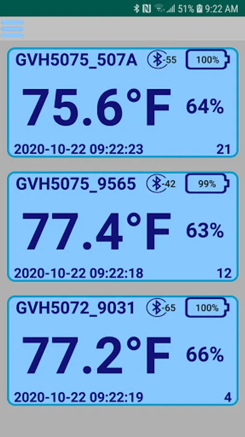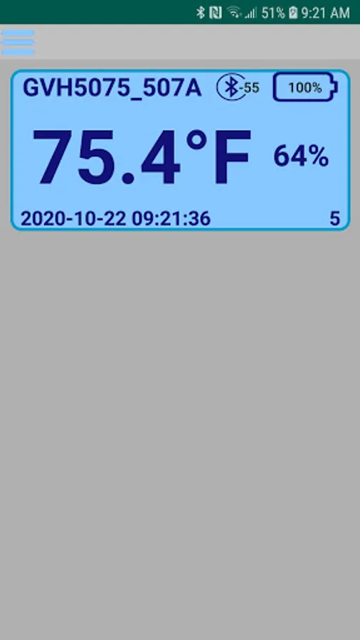 This App is a remote display for real-time data from GoVee H5072 & H5075 Temperature/Humidity sensors. It retrieves the data from the devices Advertising data. It can display data from up to 10 devices at the same time.