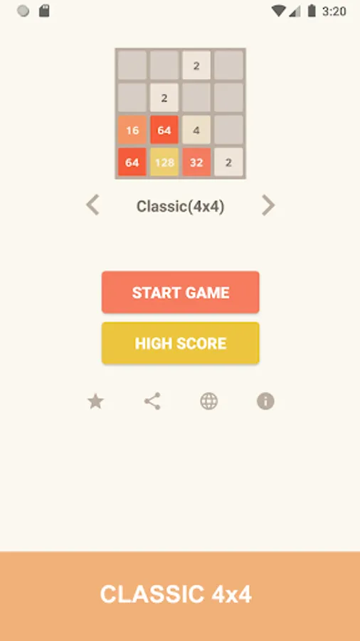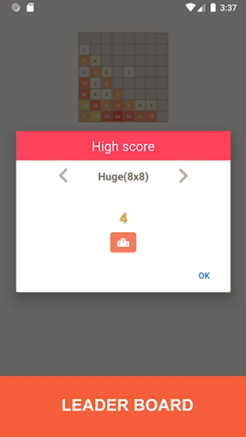 - You can play with different board sizes: Tiny(3x3), Standard(4x4), Big(5x5), Bigger(6x6), Huge(8x8).