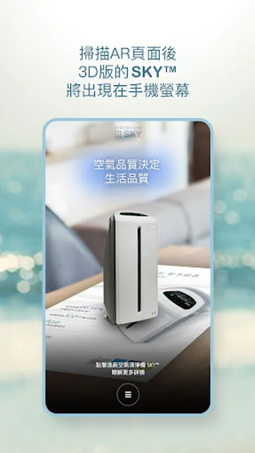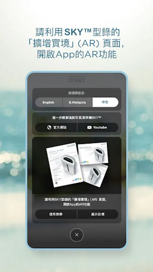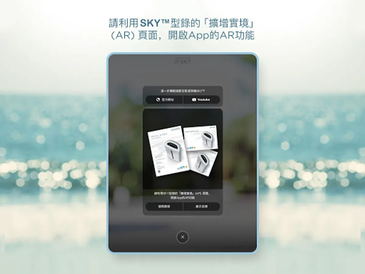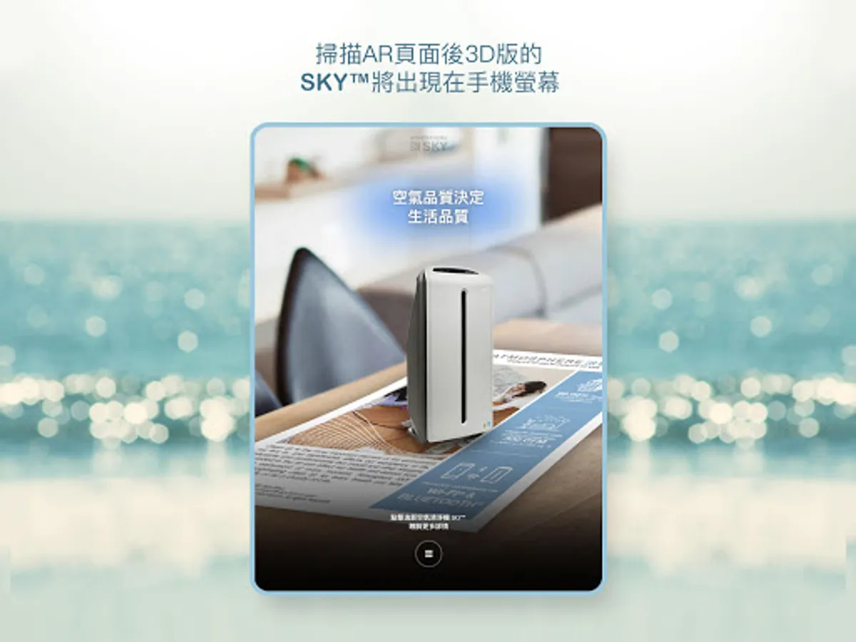 利用SKY型錄的「擴增實境」(AR)頁面,開啟App的AR功能。對著SKY型錄的AR頁面掃描,3D版的SKY將出現,用戶可以探索SKY不同組件的詳細資訊。除此之外,用戶也可以在離線后瀏覽產品的功能。