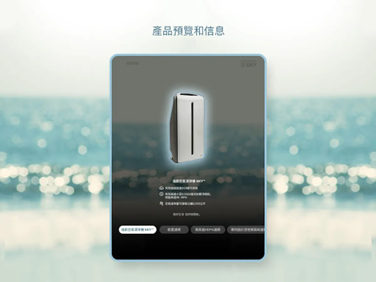 新的逸新空氣清淨機SKY空氣處理系統是該品牌經過更高性能和技術研究的第二代產品。用戶可以通過逸新AR 應用程序瞭解更多詳情。