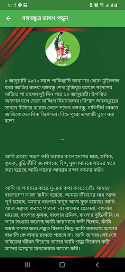 এরপর নতুন করে দেশকে গড়ে তোলার প্রত্যয় ব্যক্ত করেন আবেগী অথচ আত্মবিশ্বাসী কণ্ঠে। বঙ্গবন্ধুর মুখে দিকে তাকিয়ে, তার কণ্ঠের মূর্চ্ছনায়, আবেশিত হয়ে যায় পুরো বাংলাদেশ। প্রতিটি বাঙালির হৃদয় পরিণত হয় পুষ্পবৃষ্টির ফেনিল সায়রে। বাংলাদেশের মহান স্বাধীনতা এবং মুক্তিযোদ্ধাদের বীরোচিত বিজয় পূর্ণতা লাভ করে এই ঐতিহাসিক প্রত্যাবর্তনের মাধ্যমে। ১৬ ডিসেম্বর যুদ্ধে বিজয় লাভ হলেও, ১০ জানুয়ারি তা পরিপূর্ণতা পায়।