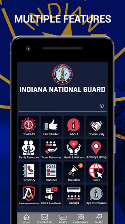 The Indiana National Guard is a joint-force organization with 65 Army National Guard installations around the state, and facilities at Camp Atterbury Joint Maneuver Training Center and Muscatatuck Urban Training Center. Additionally, there are two Air Wings, the 181st Intelligence Wing based in Terre Haute, and the 122nd Fighter Wing based in Fort Wayne. With the INARNG app, everything you want to know about the Indiana National Guard is at your fingertips. Staying in touch with the Indiana National Guard is easier and more enjoyable than ever before.