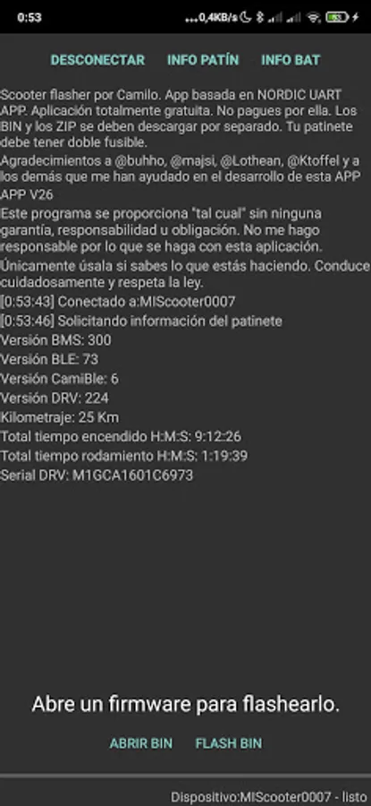 App to send firmware to M365 Scooter over bluetooth, it includes all official firmwares available over internet. It allows downgrade.