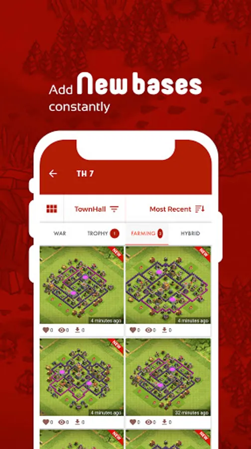 You will found new tested clash bases builder base and home village in farming base , war base , hybrid , trophy , funny designs with constantly update and directly copy links.
