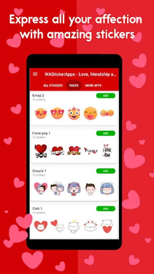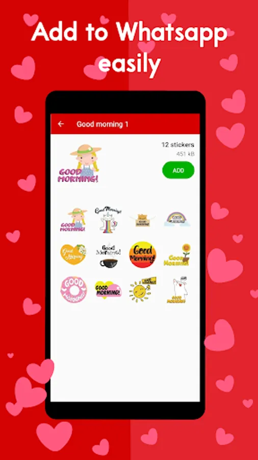 A wide variety of stickers to send to the people you like, just open the app, see the stickers you like, click add and that's it!