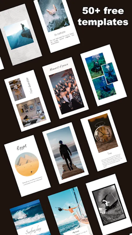 Add nice fonts and instagram templates with ease. Share your best moments on Facebook, Whatsapp and Instagram stories!