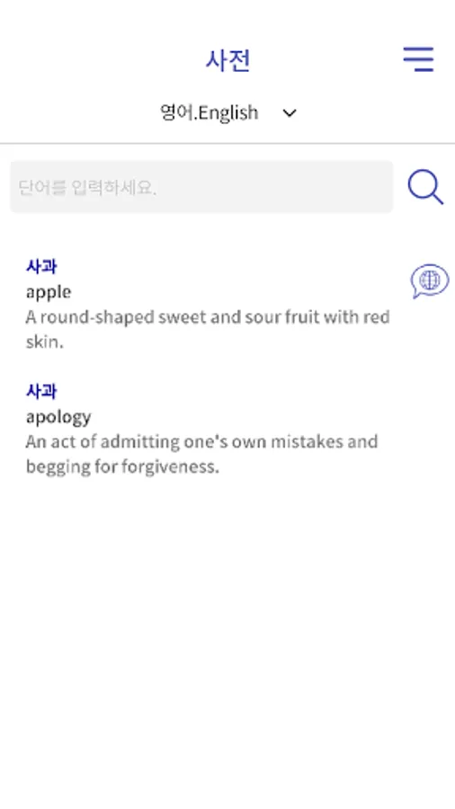 -Dictionary: A dictionary function that informs you of the meaning in Korean by entering words from each country