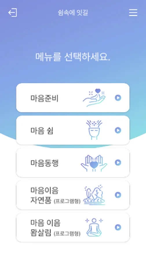 The application contains breathing-relaxation program techniques and stabilization techniques developed by the Chungcheongnam-do Metropolitan Mental Health Welfare Center.
