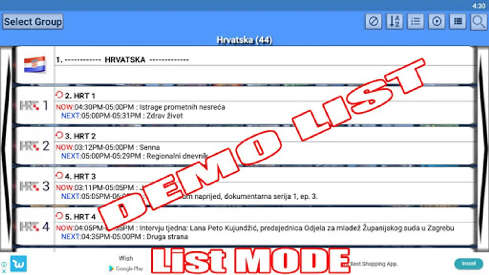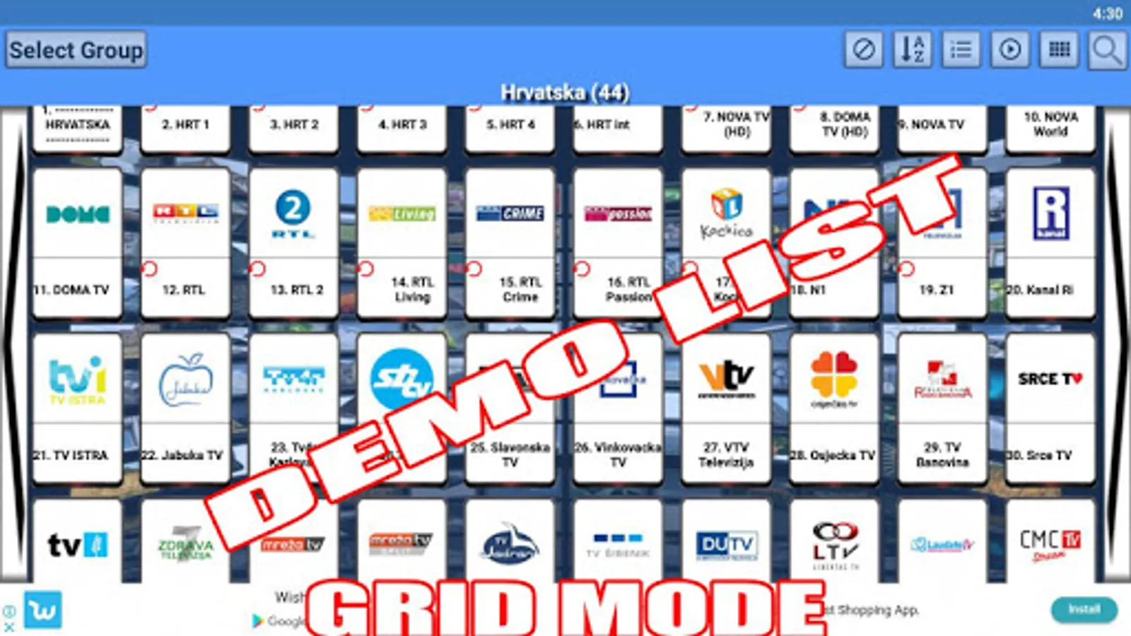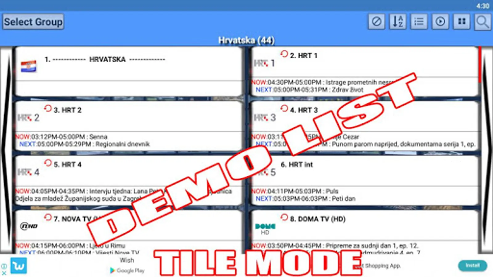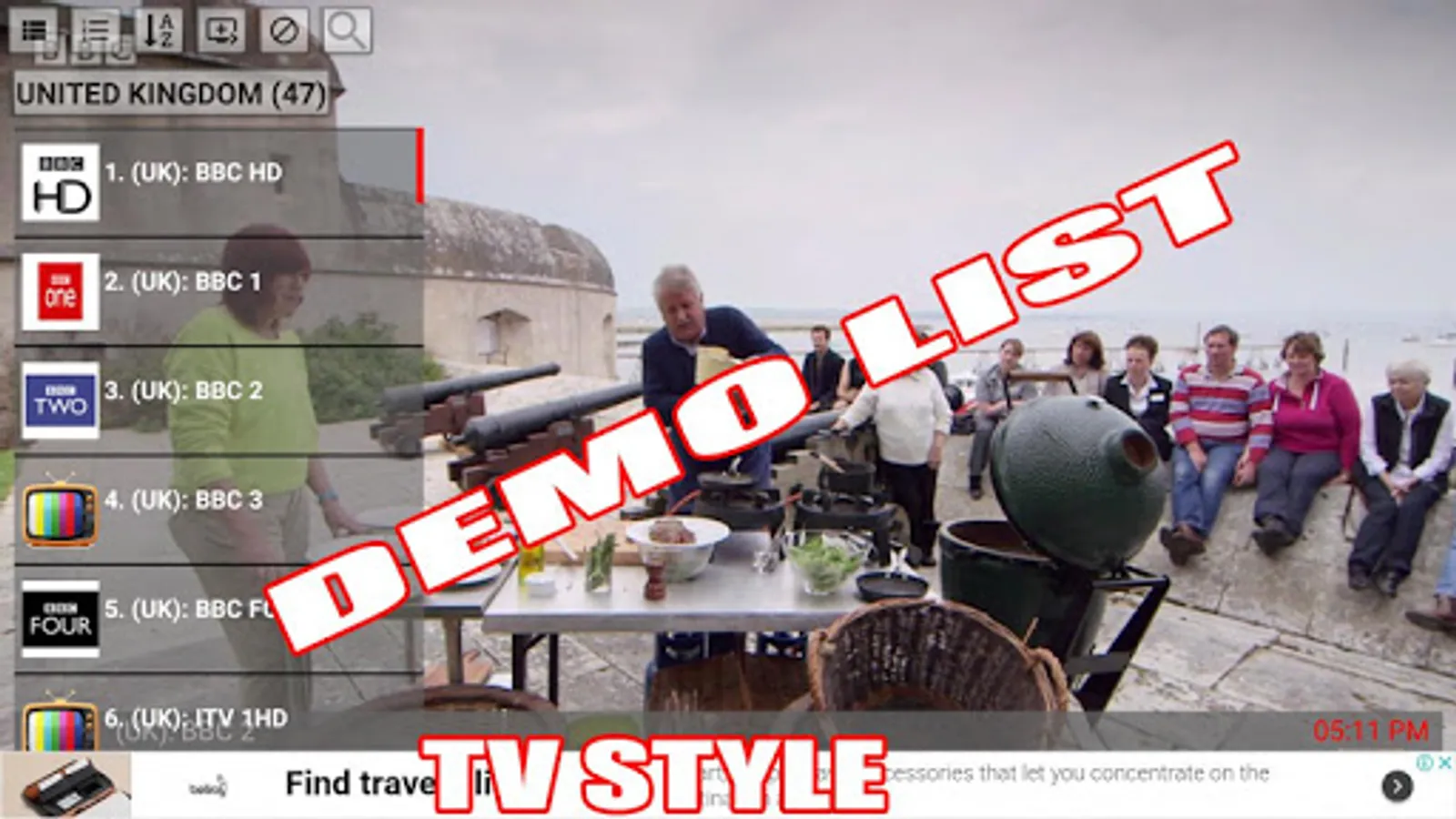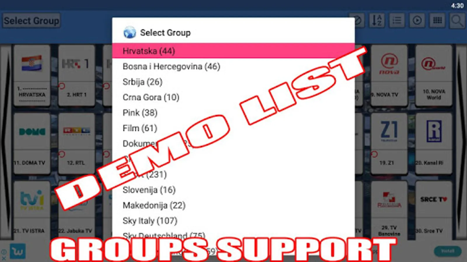 NO PLAYLIST or similar included with this app, channels in photos and video are just for Demonstration.