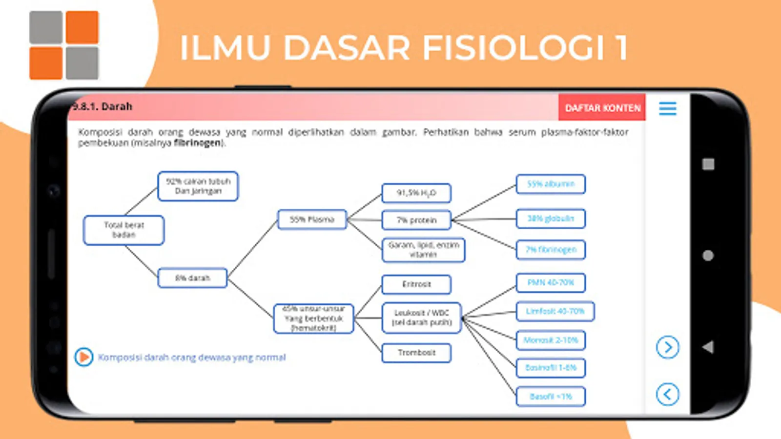 Application of Basic Science of Physiology 1 is an application that contains basic science material of physiology 1 which is equipped with interactive audio visuals.