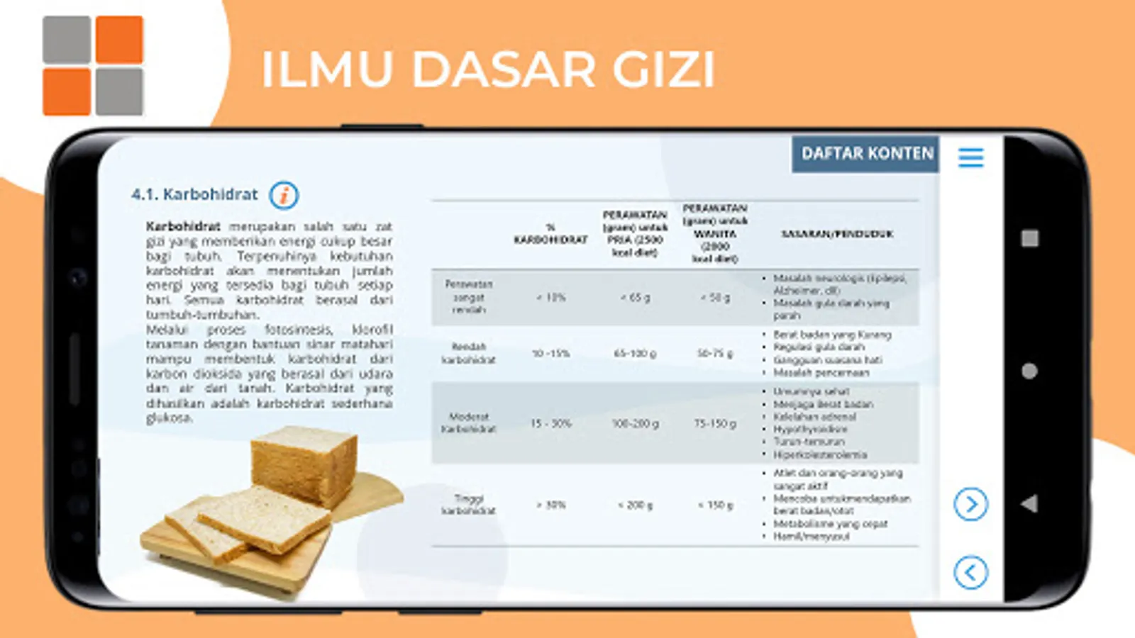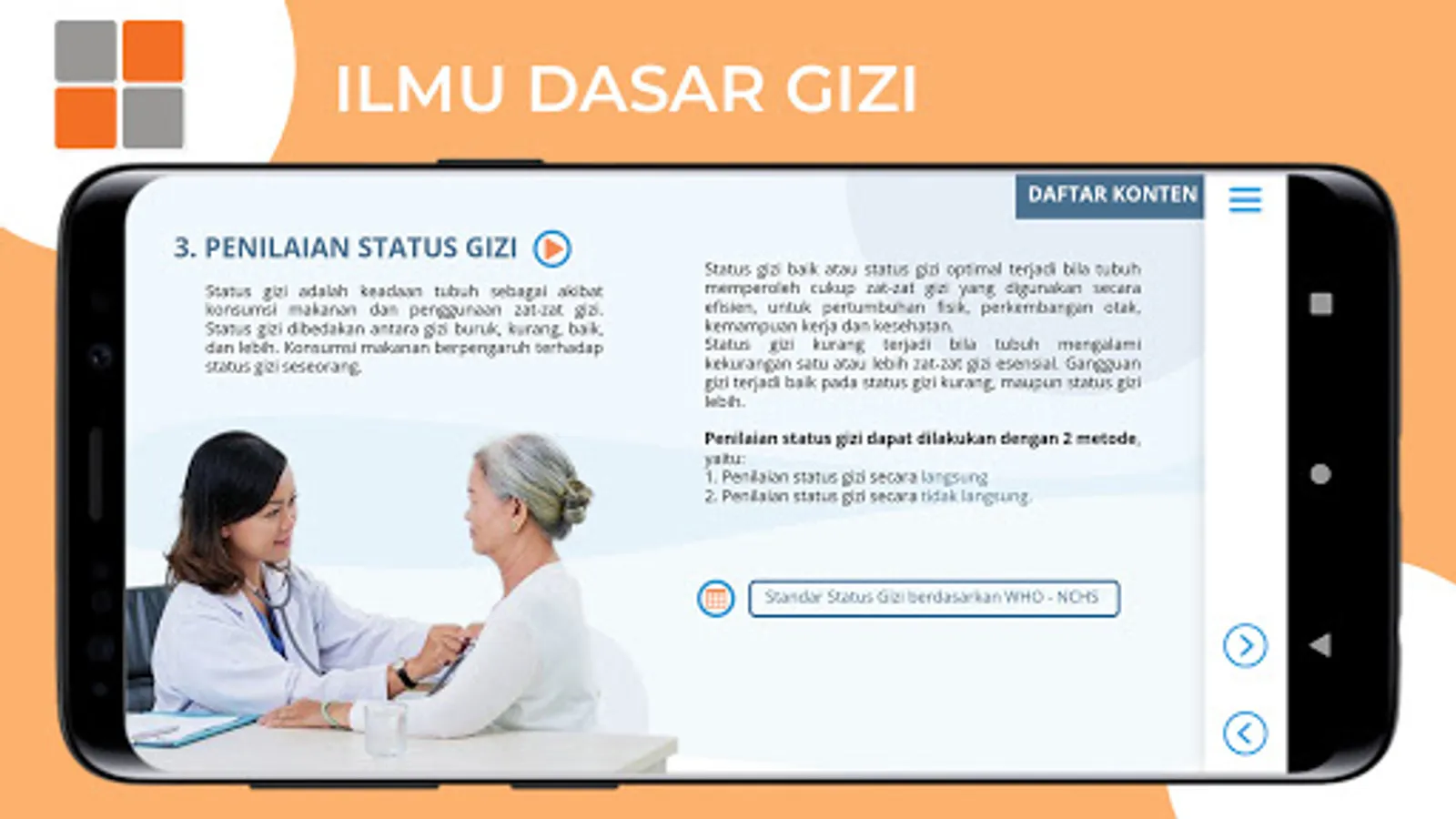 The Basic Science Application of Nutrition is an application that contains basic nutrition material equipped with interactive audio visuals.