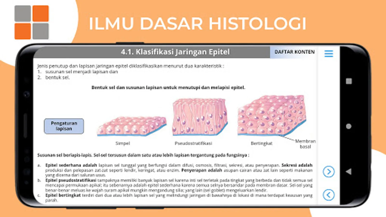 The Basic Science Application of Histology 1 is an application that contains basic science material of histology 1 which is equipped with interactive audio visuals.