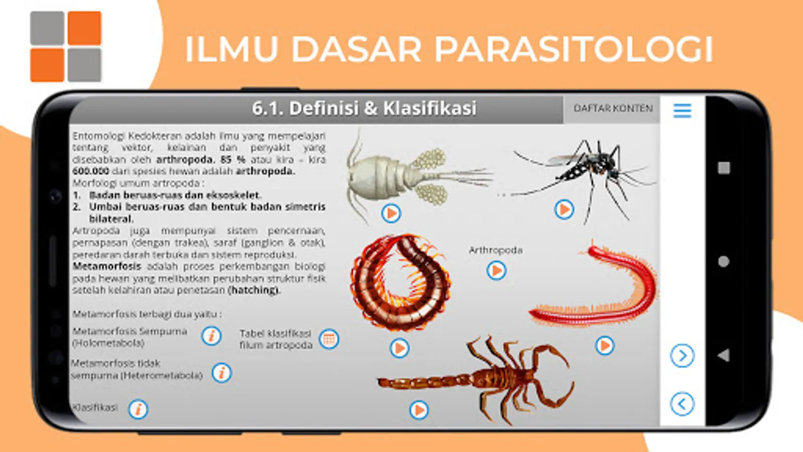 Application "Basic Science of Parasitology" is an application that contains basic science material of Parasitology which is equipped with interactive audio visuals.