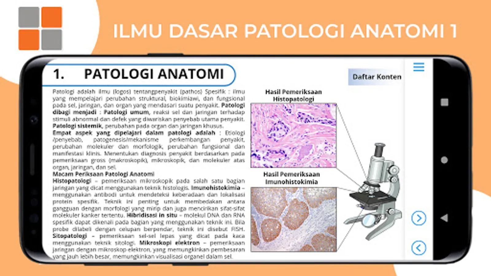 The Basic Science Application of Anatomical Pathology 1 is an application that contains basic science of anatomical pathology 1 which is equipped with interactive audio visuals.