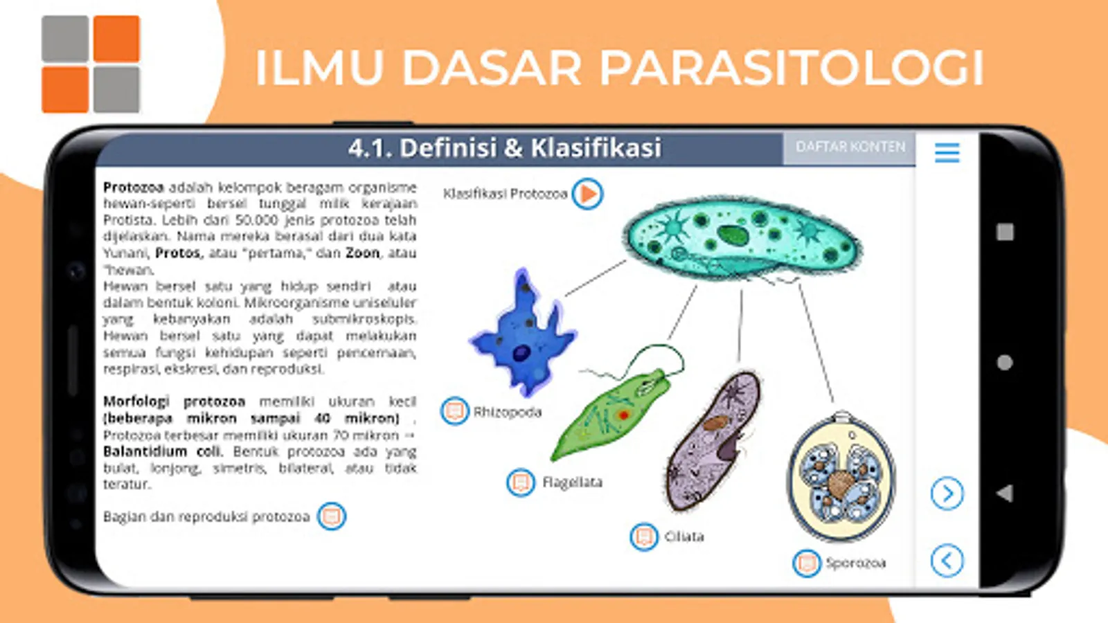 Application "Basic Science of Parasitology" is an application that contains basic science material of Parasitology which is equipped with interactive audio visuals.